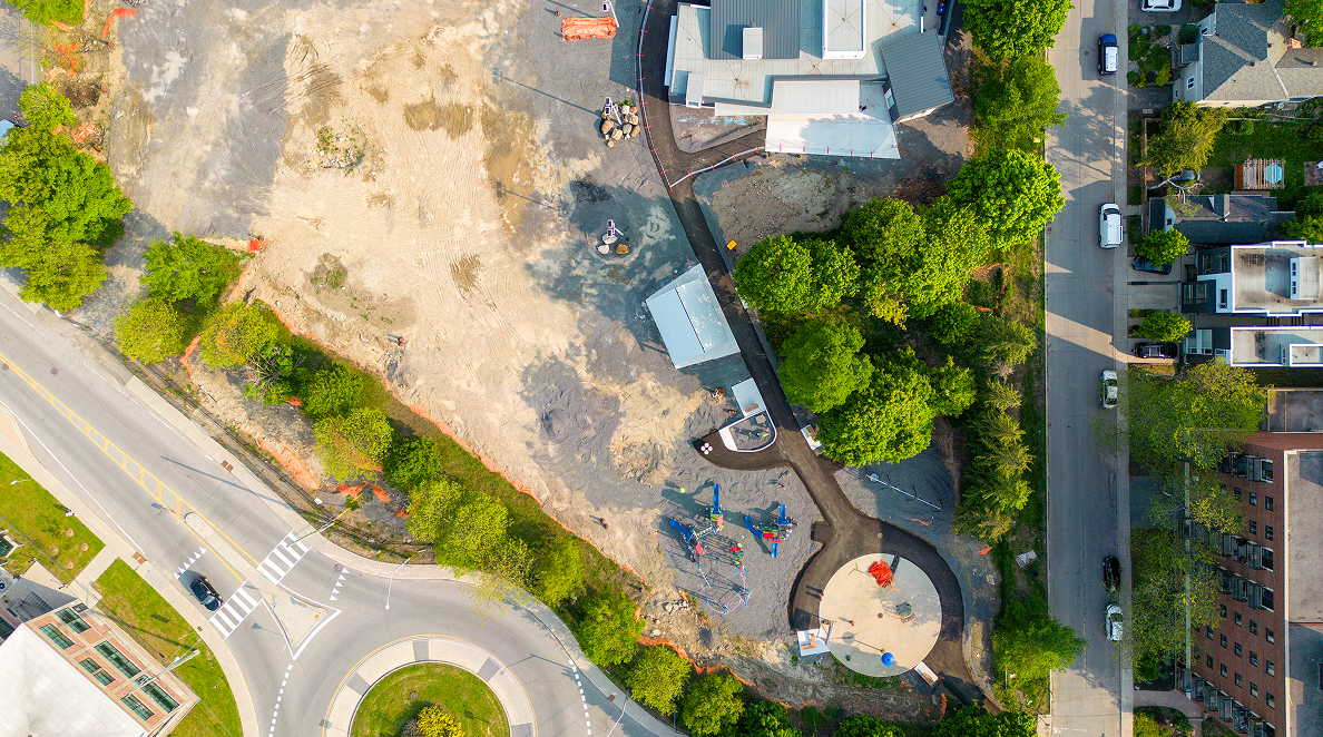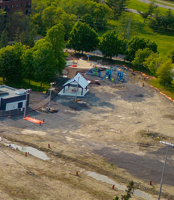 The redeveloped park now features an accessible playground, splash pad, basketball courts, a seasonal skating rink, and open green spaces, designed to support everything from casual play to organized community events. New pathways and gathering areas have made the park more walkable, welcoming, and enjoyable for visitors of all ages and abilities.